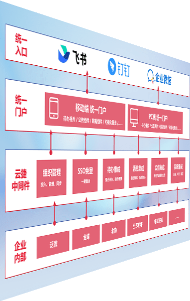 对协作平台提供支持服务,,,,支持企业应用与协作平台对接,,包含组织同步、、、消息集成、、、待办集成等。。支持目前主流的协作平台:钉钉、、、、企微和飞书。。。。